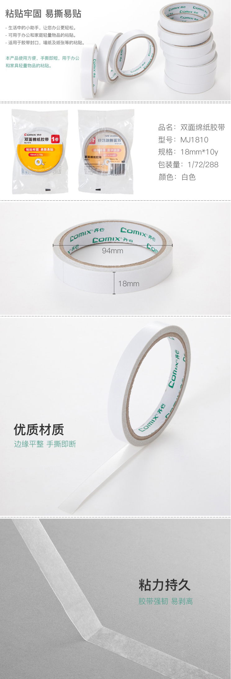 商品名称:齐心 MJ1810 双面棉纸胶带