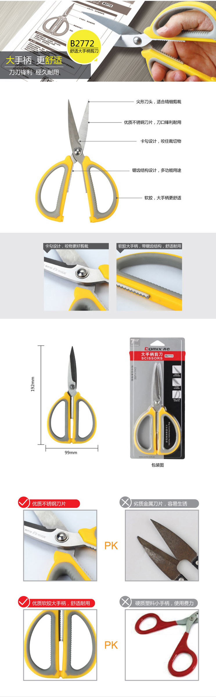 商品名称:齐心 B2772 大号舒适大手柄剪刀 192mm