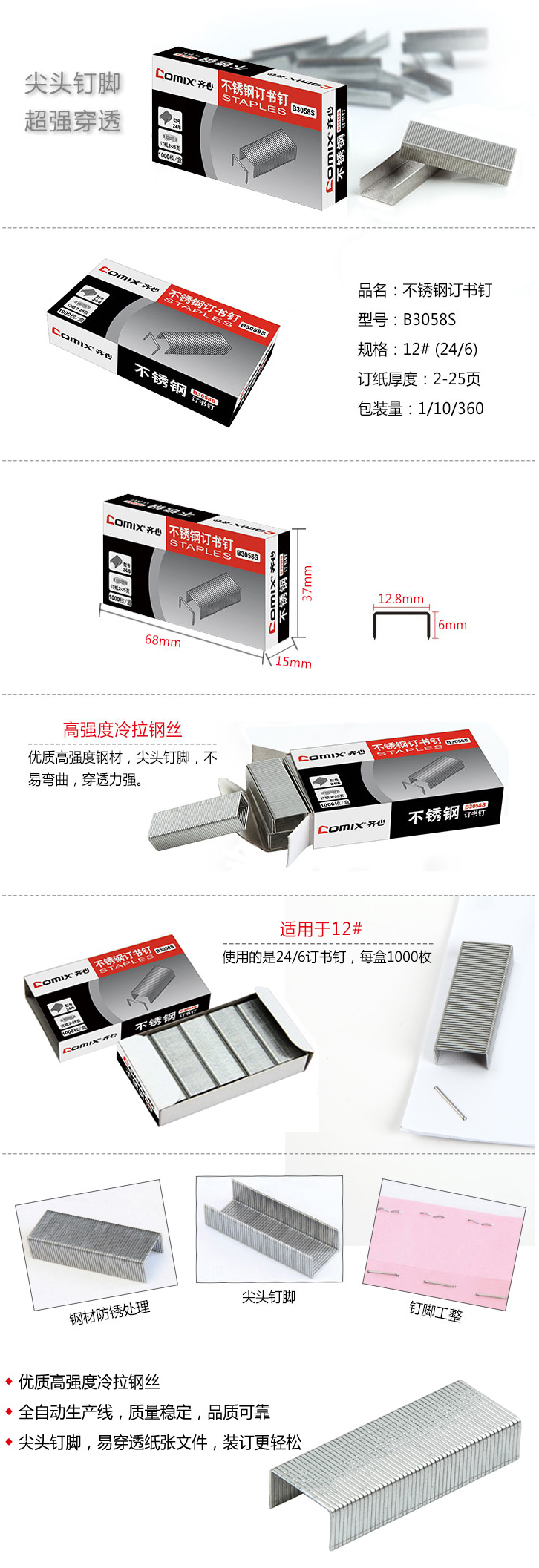 商品名称:齐心 B3058S 不锈钢订书钉 24/6