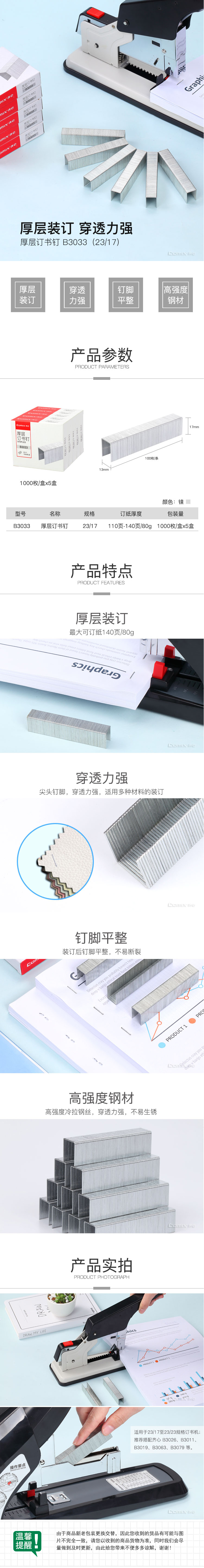商品名称:齐心 B3033 厚层订书钉(23/17)140页 1000枚/盒