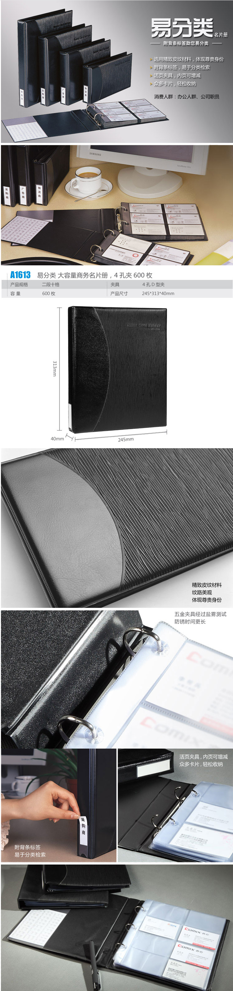 商品名称:齐心 A1613 易分类大容量商务名片册 4孔夹600枚