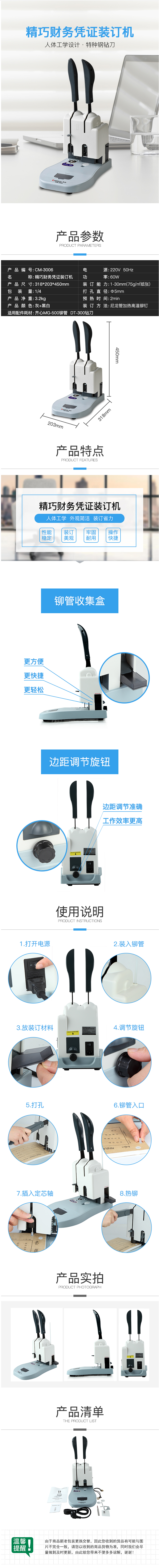 商品名称:齐心 CM-3006 精巧财务凭证装订机 打孔30mm