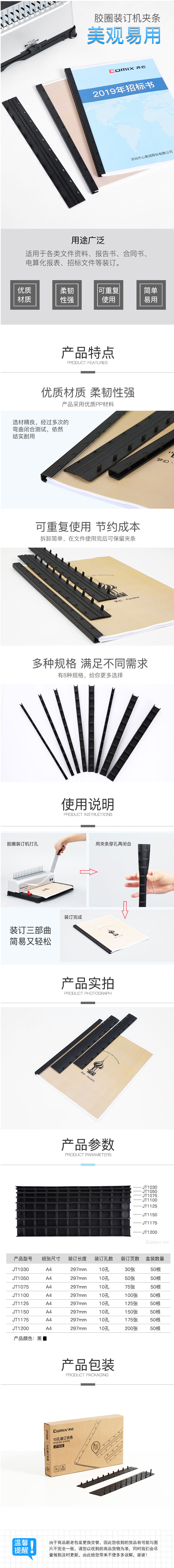 商品名称:齐心 JT1030 装订夹条 3mm宽 1SET=50PCS
