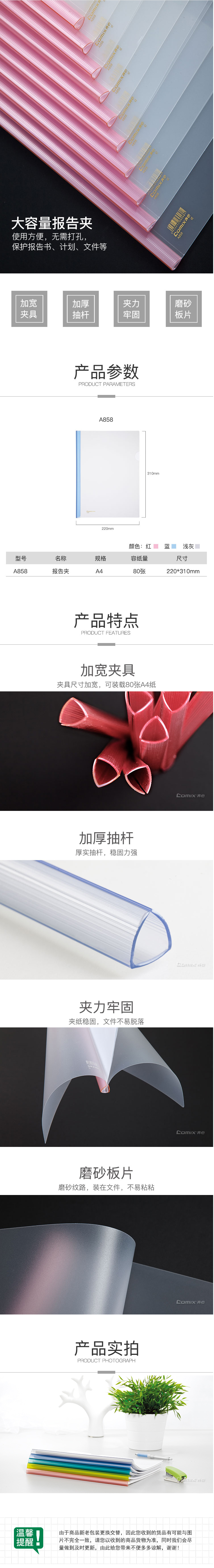 商品名称:齐心 A858 大容量加厚型报告夹 A4 抽杆式 80张