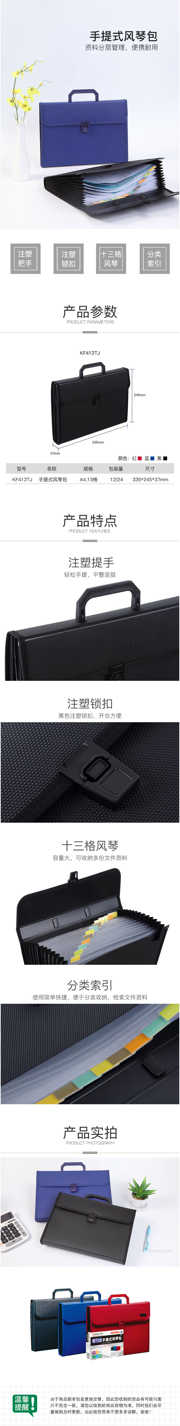 商品名称:齐心 KF412TJ 易分类手提式风琴包 A4 13袋