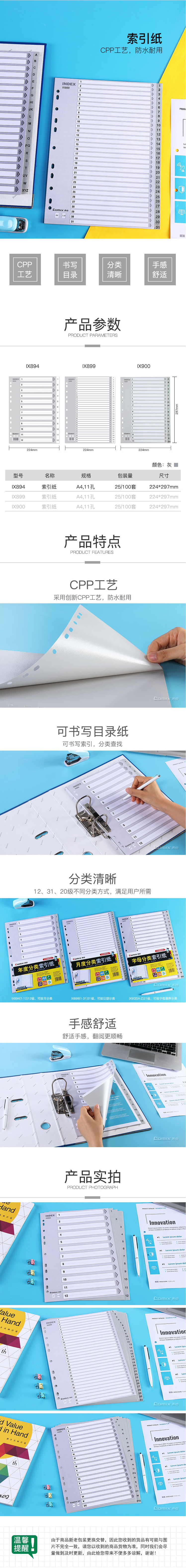 商品名称:齐心 IX894 易分类 年度索引纸 A4 12页1-12 11孔 PP