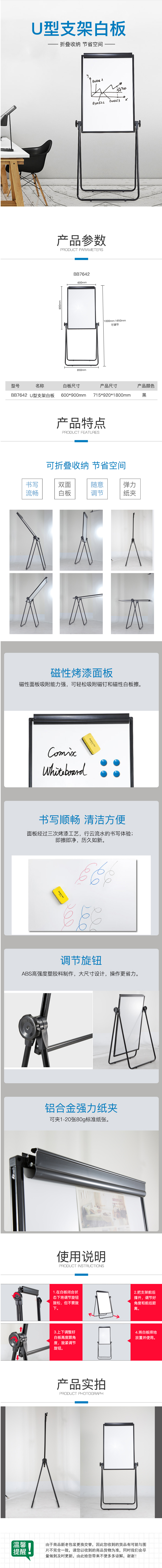 商品名称:齐心 BB7642 U型支架白板(60*90cm)