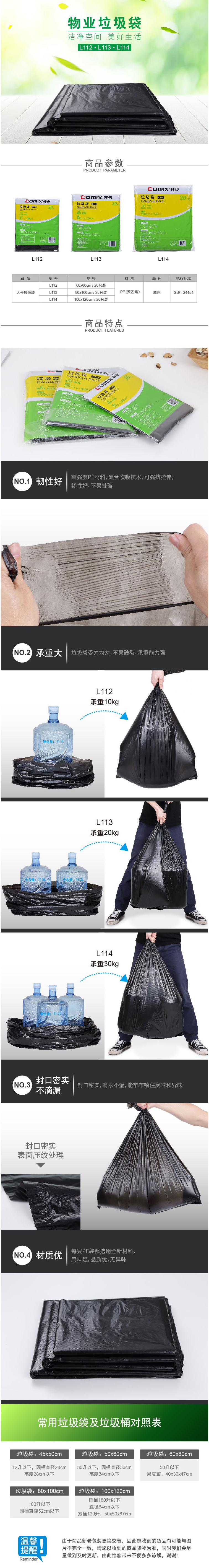 商品名称:齐心 L113 大号垃圾袋80*100cm 20个装