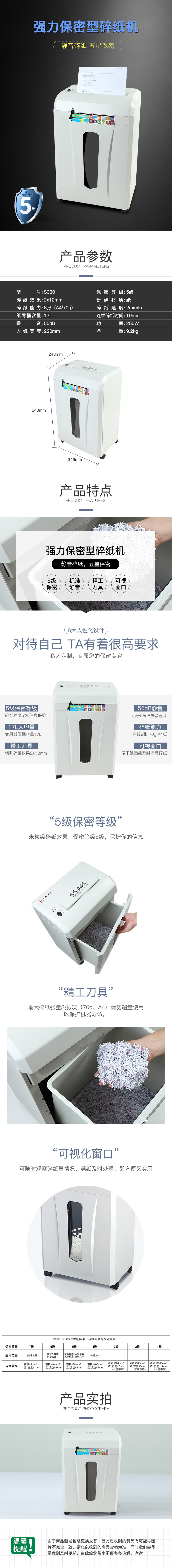 商品名称:齐心 S330 强力保密型碎纸机 2×12mm/8张纸/17L/单入口/续航10min
