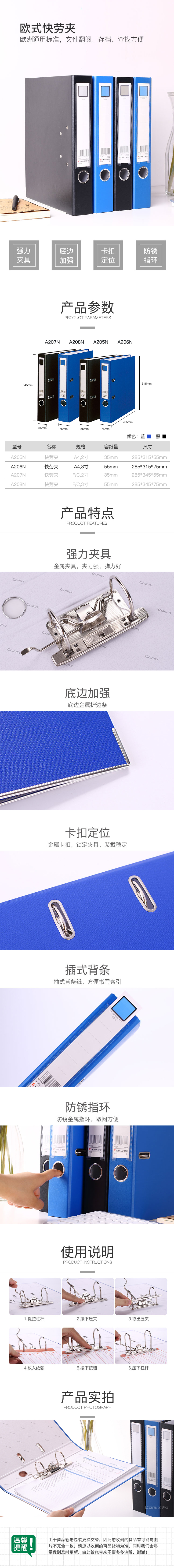 商品名称:齐心 A206N 办公必备欧式快劳夹 A4 3寸