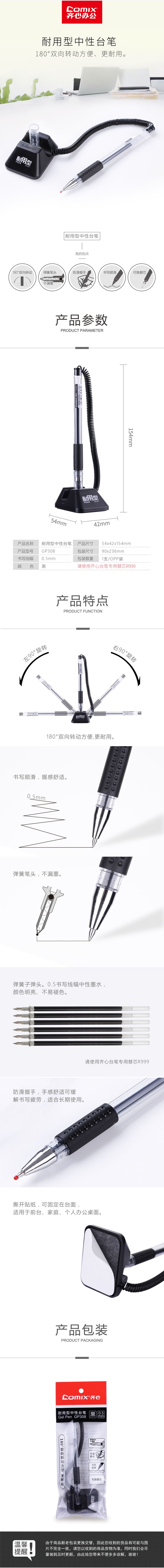 商品名称:齐心 GP308 耐用型台笔0.5mm 匹配笔芯R999