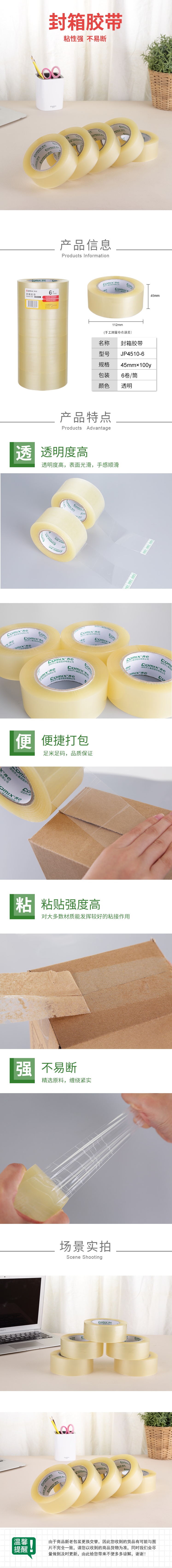 商品名称:齐心 JP4510-6 封箱胶带 6卷装