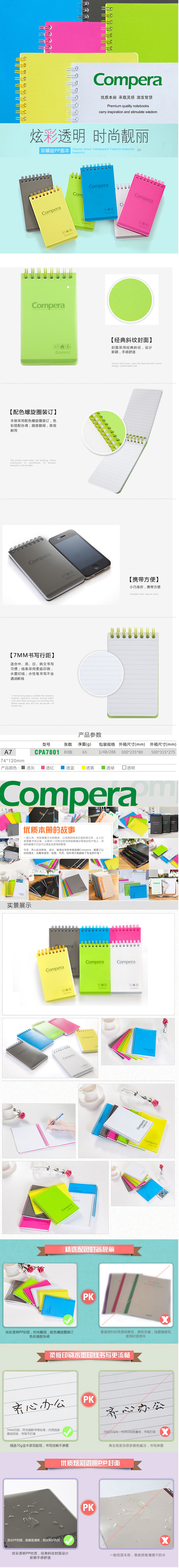 商品名称:齐心 CPA7801 Compera 双螺旋PP面本 A7 80张