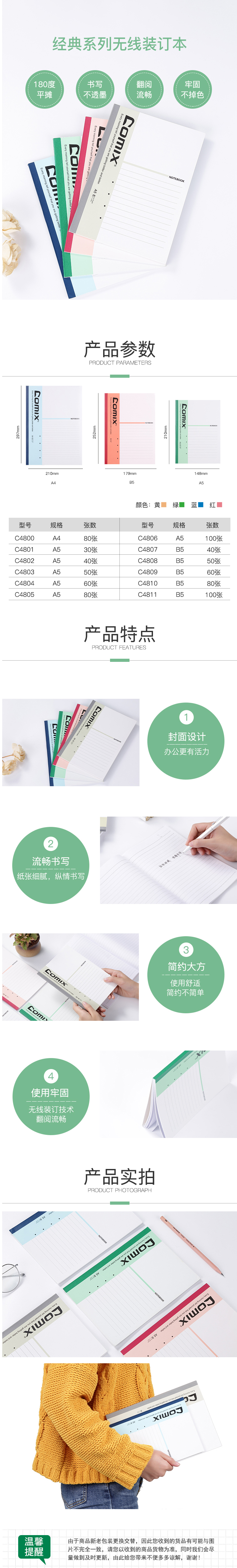 商品名称:齐心 C4804 经典系列无线装订本 A5 60张
