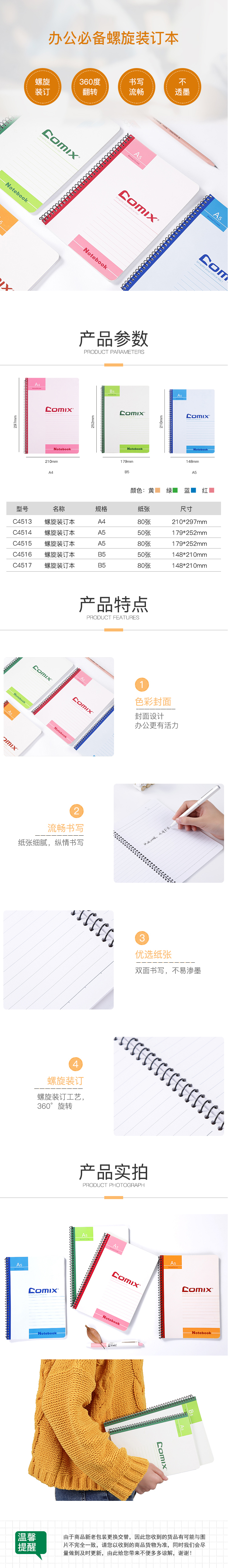 商品名称:齐心 C4514 办公必备螺旋装订本 A5 50张