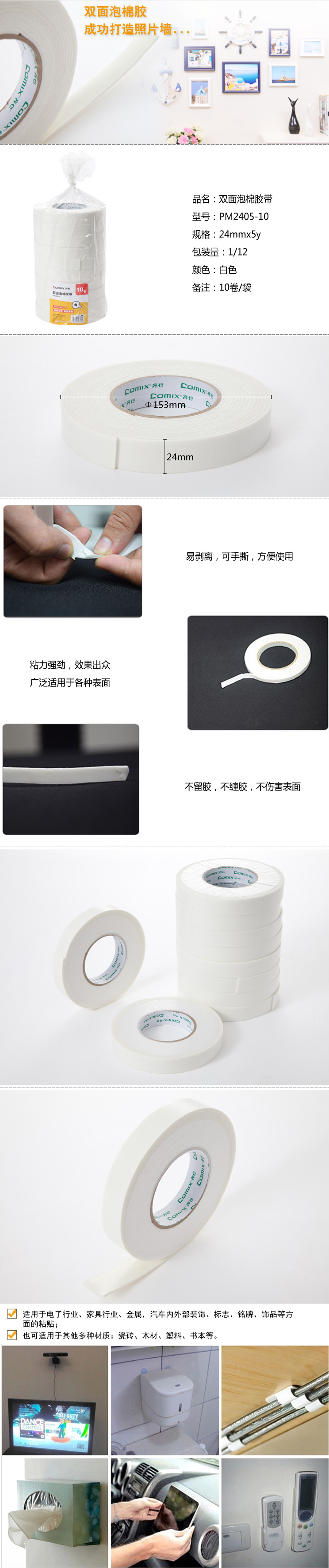 商品名称:齐心 PM2405-10 双面泡棉胶带 10卷/筒