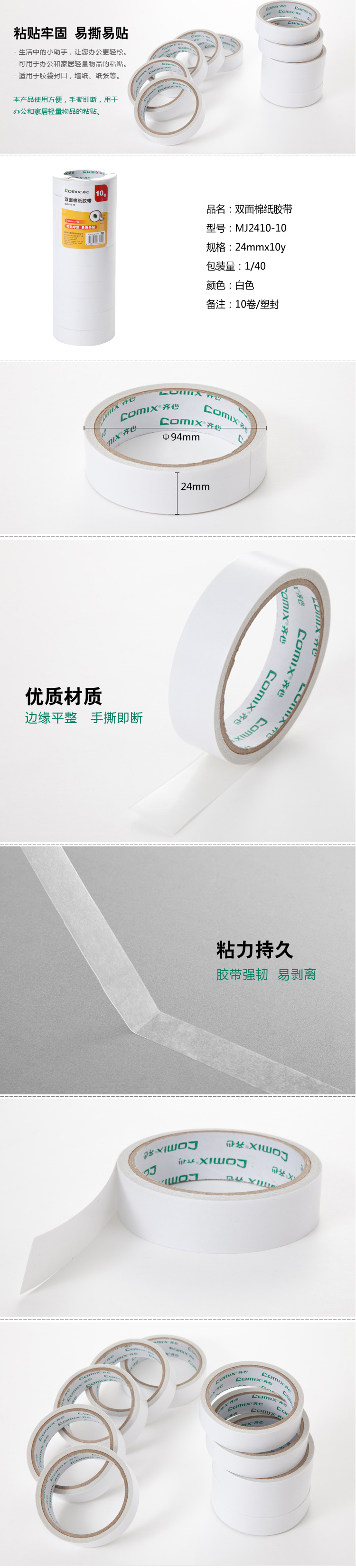 商品名称:齐心 MJ2410-10 双面棉纸胶带 10卷/筒