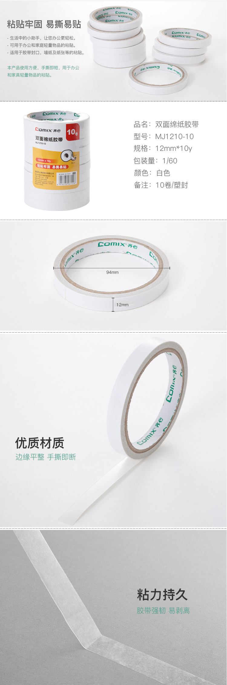 商品名称:齐心 MJ1210-10 双面棉纸胶带 10卷/筒