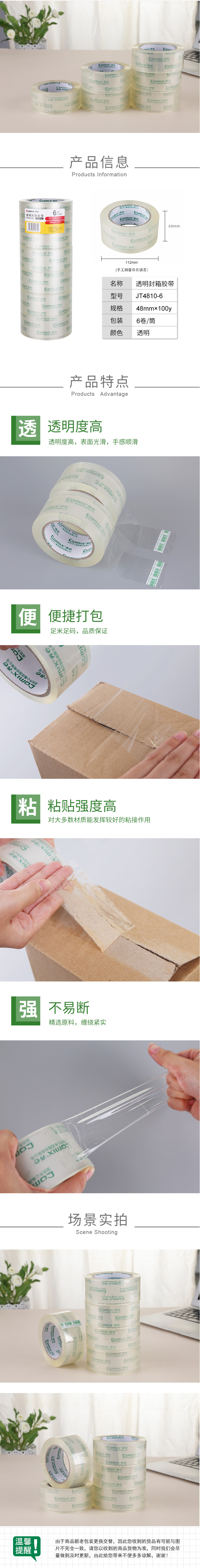 商品名称:齐心 JT4810-6 超透封箱胶带 6卷/筒 48mm*100y