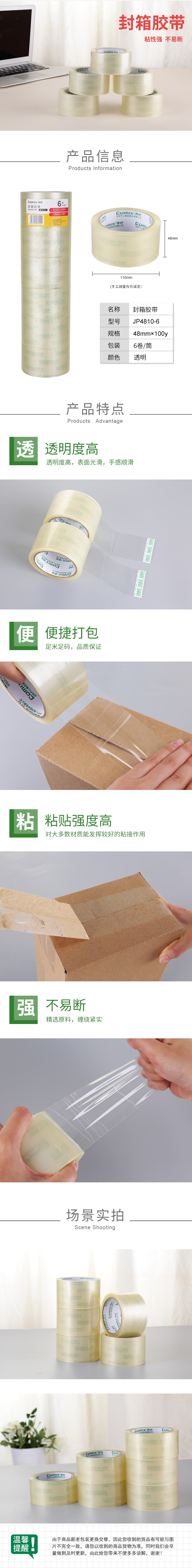 商品名称:齐心 JP4810-6 普透封箱胶带 6卷/筒 48mm*100y