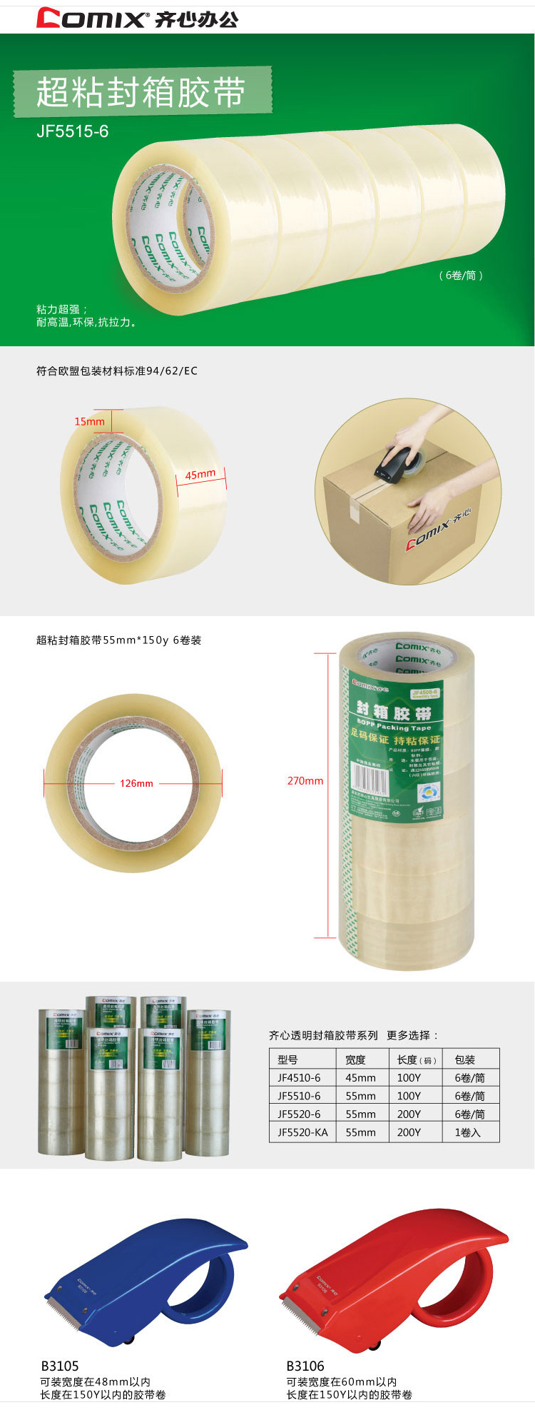 商品名称:齐心 JF5515-6 封箱胶带