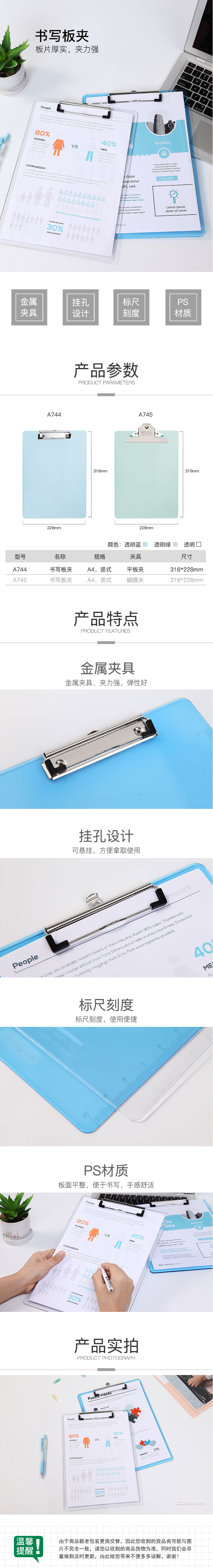 商品名称:齐心 A744 便携式 书写板夹 A4