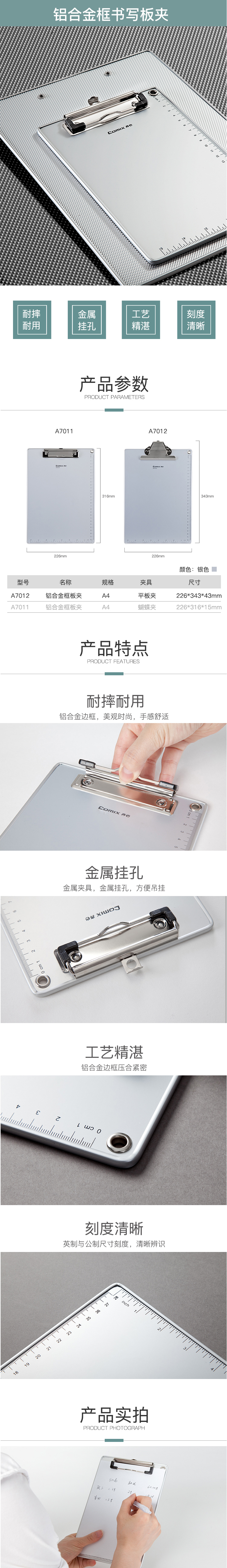 商品名称:齐心 A7012 高级铝合金蝴蝶夹 A4