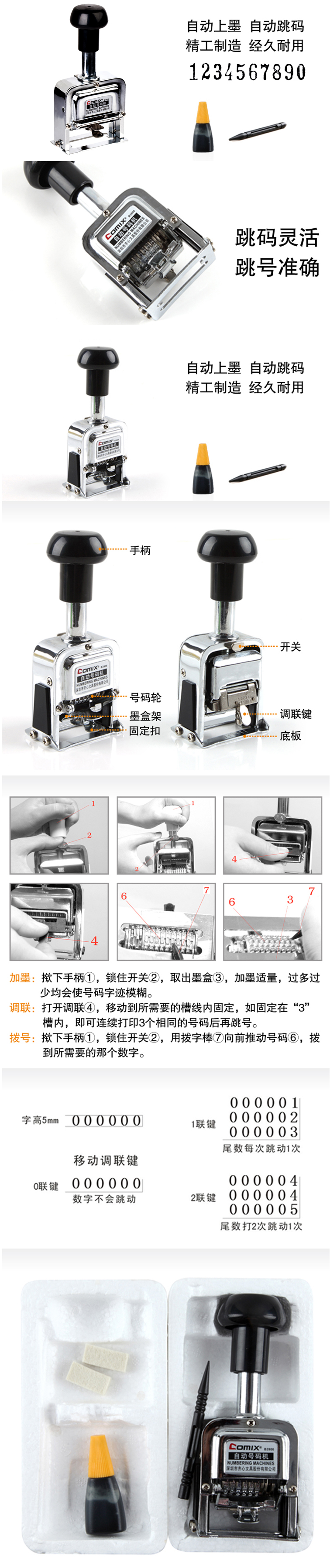 商品名称:齐心 B3910 耐用金刚号码机 10位