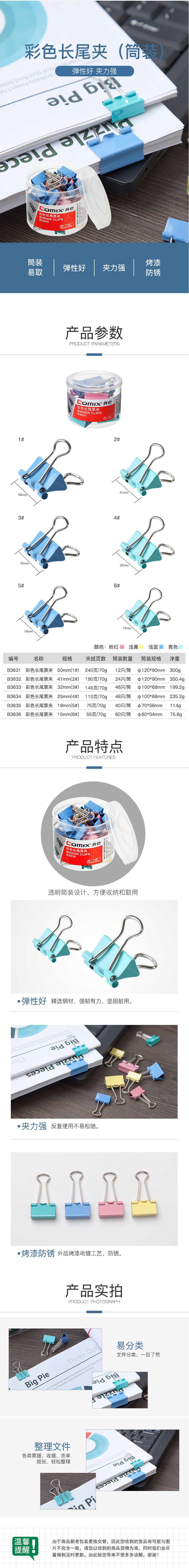 商品名称:齐心 B3633长尾票夹 3# 32mm 24只/筒