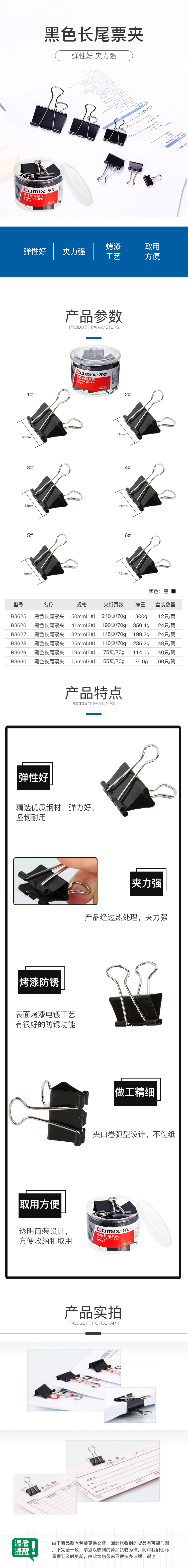 商品名称:齐心 B3627黑色长尾票夹 3# 32mm 24只/筒