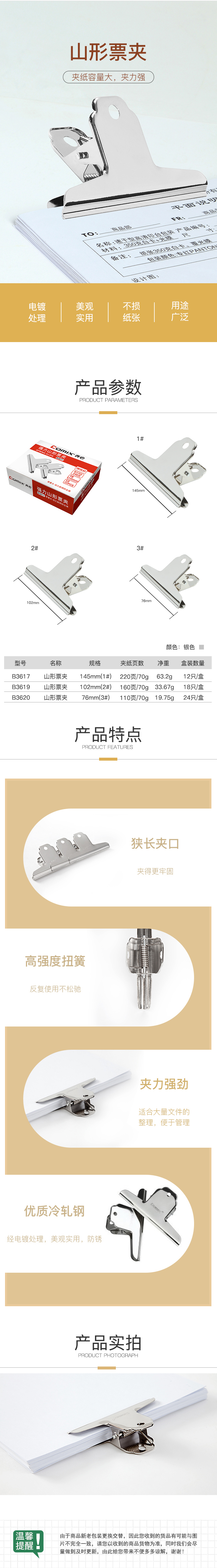商品名称:齐心 B3617 145mm山形票夹/铁票夹 1#