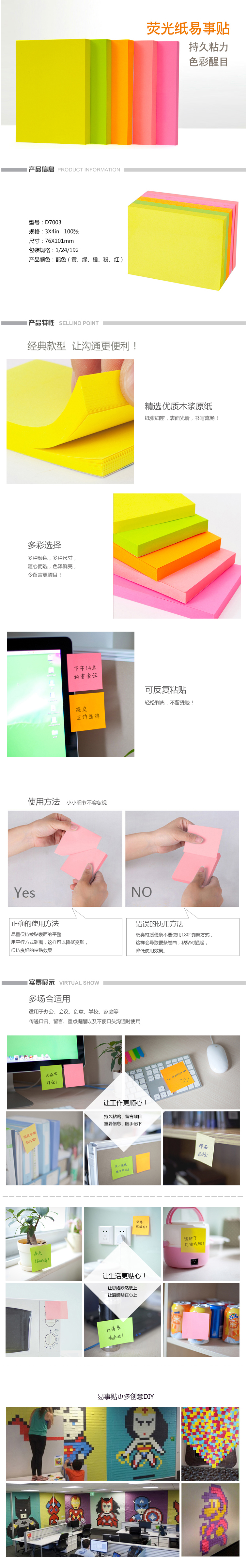 商品名称:齐心 D7003 荧光纸易事贴 3\\\\\\\"*4\\\\\\\" 100张