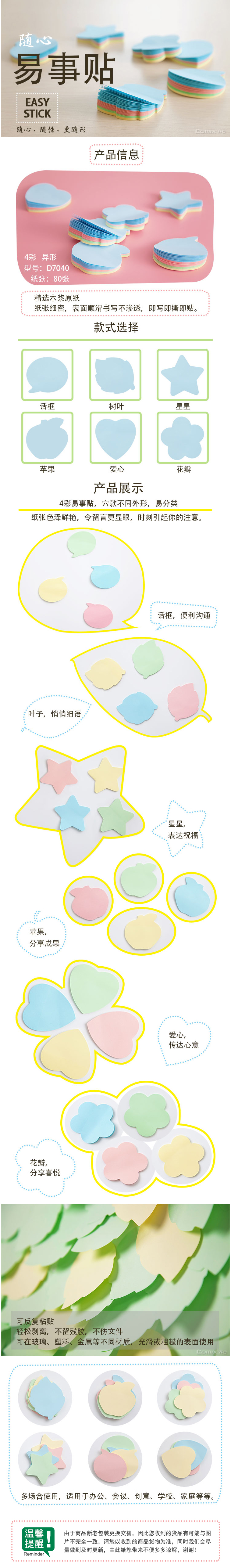 商品名称:齐心 D7040 随心易事贴 异形 80张