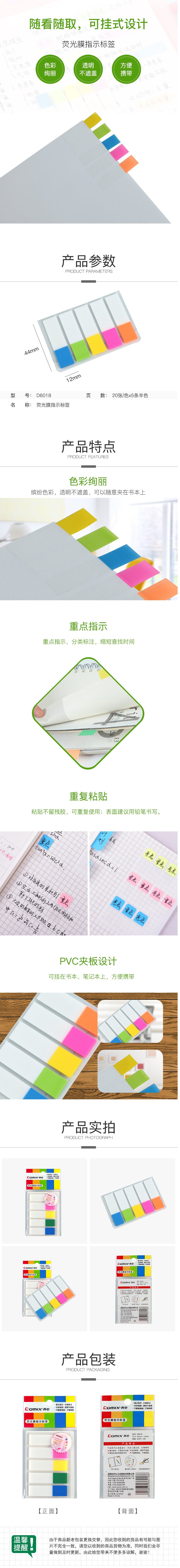 商品名称:齐心 D6018 荧彩系列标签易事贴 X5色