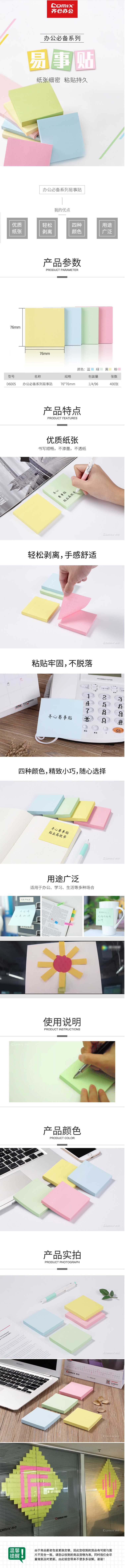 商品名称:齐心 D6005 办公必备系列易事贴四色混装 3X3英寸