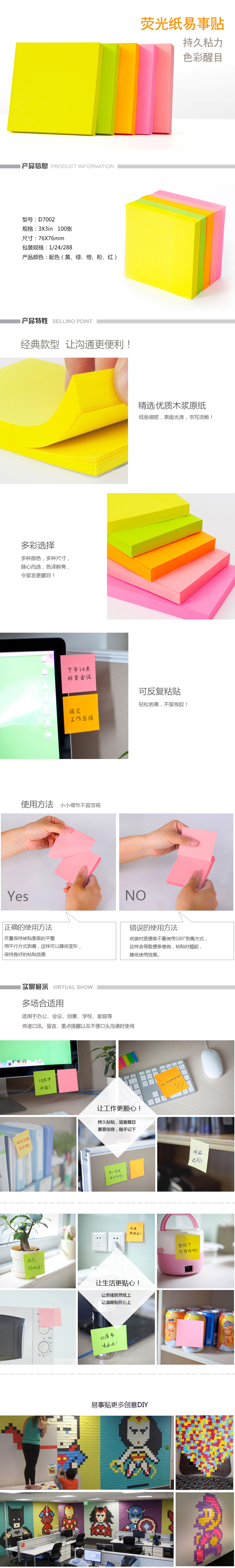 商品名称:齐心 D7002 荧光纸易事贴 3\\\\\\\"*3\\\\\\\" 100张