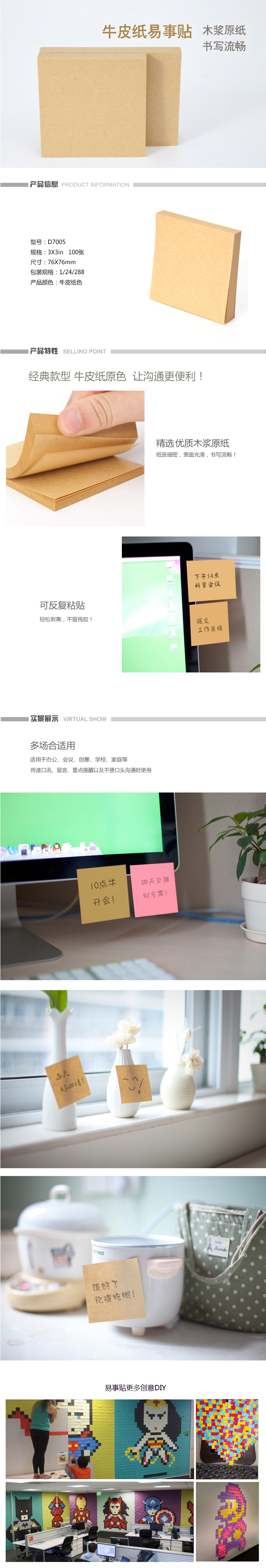 商品名称:齐心 D7005 牛皮纸易事贴 3\\\\\\\"*3\\\\\\\" 100张