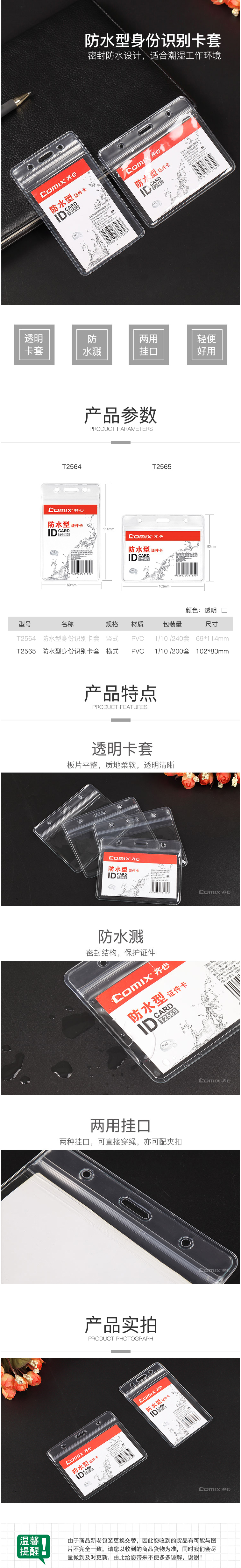 商品名称:齐心 T2565 防水型 身份识别卡套 软质PVC 横式 10个/套