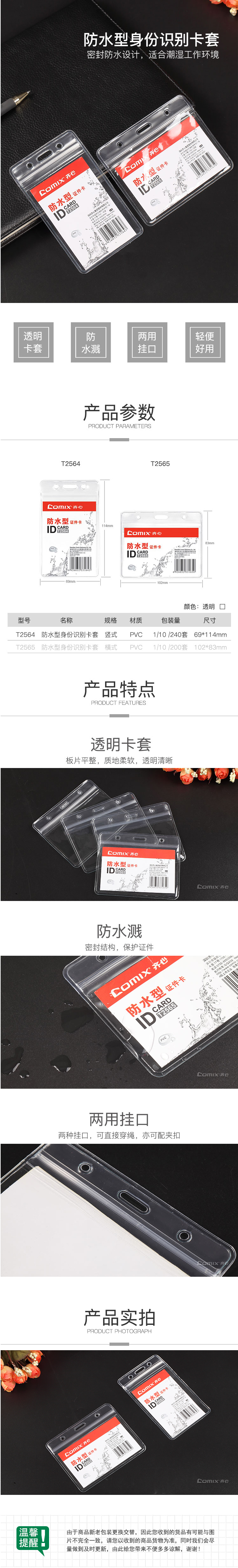 商品名称:齐心 T2564 防水型 身份识别卡套 软质PVC 竖式 10个/套