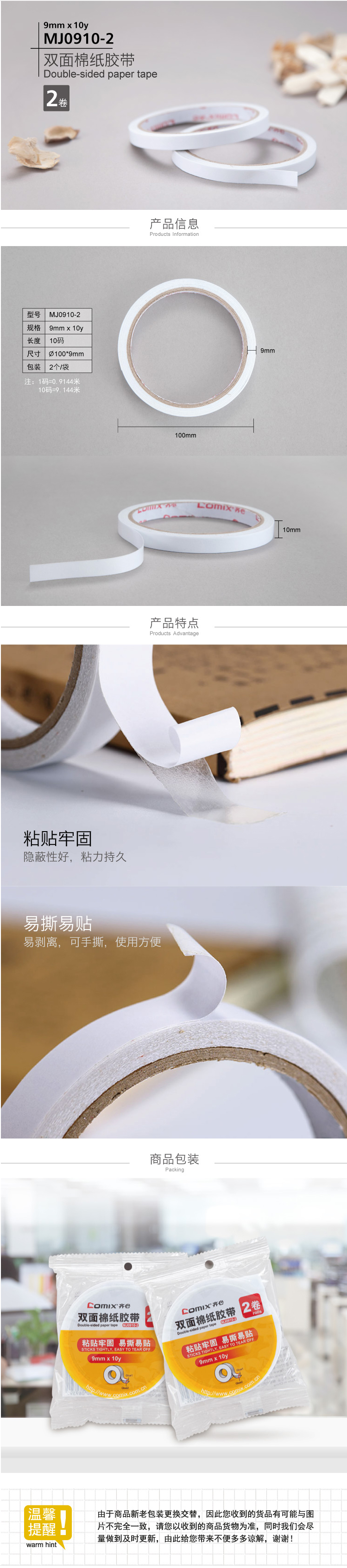商品名称:齐心 MJ0910-2 双面棉纸胶带
