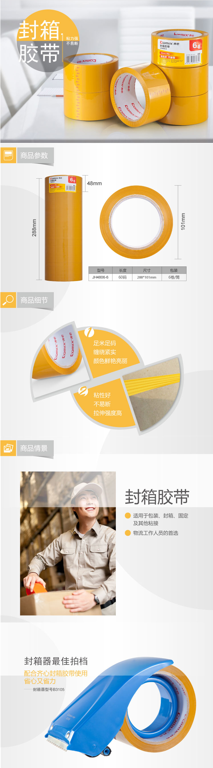 商品名称:齐心 JH4806-6 封箱胶带