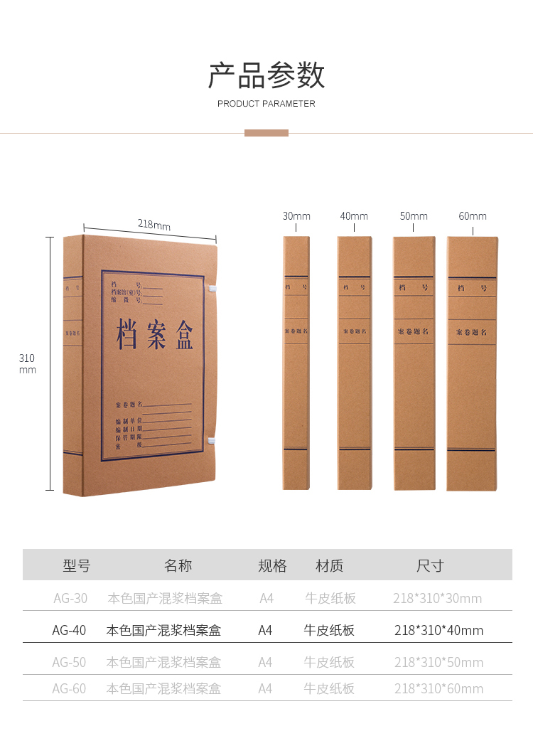 商品名称:齐心 AG-30 本色国产混浆档案盒 A4/30mm 10个/套