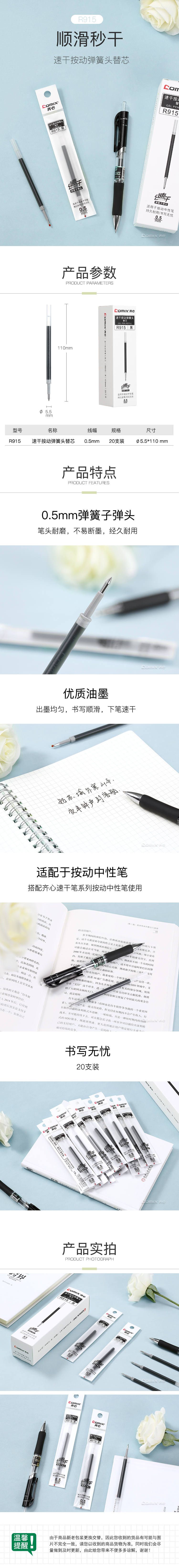 商品名称:齐心 R915 速干按动弹簧头替芯 0.5mm