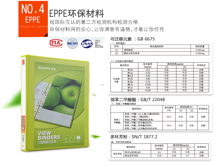 商品名称:齐心 A0215 易展示 美式三面插袋文件夹 A4 2寸2孔D型夹