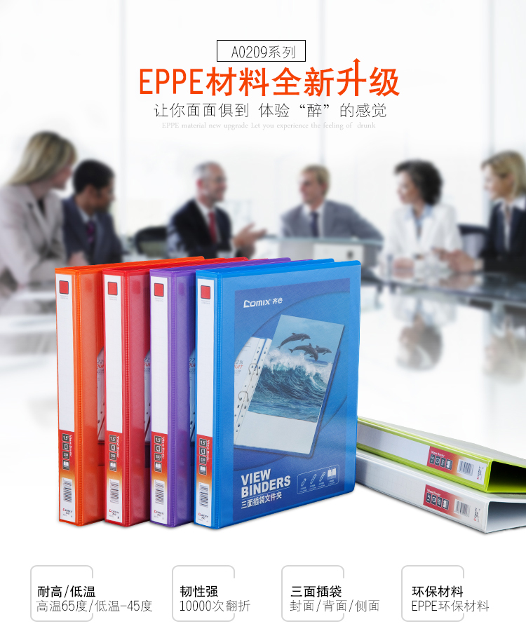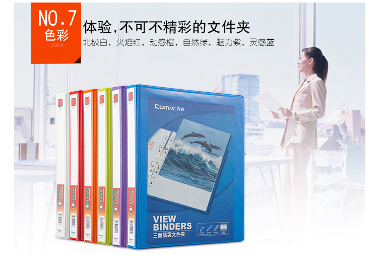 商品名称:齐心 A0239 易展示 美式三面插袋文件夹 A4 4寸4孔D型夹