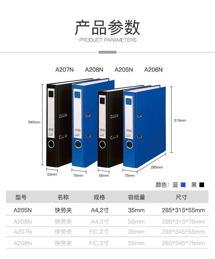 商品名称:齐心 A205N 欧式快劳夹 A4 2寸