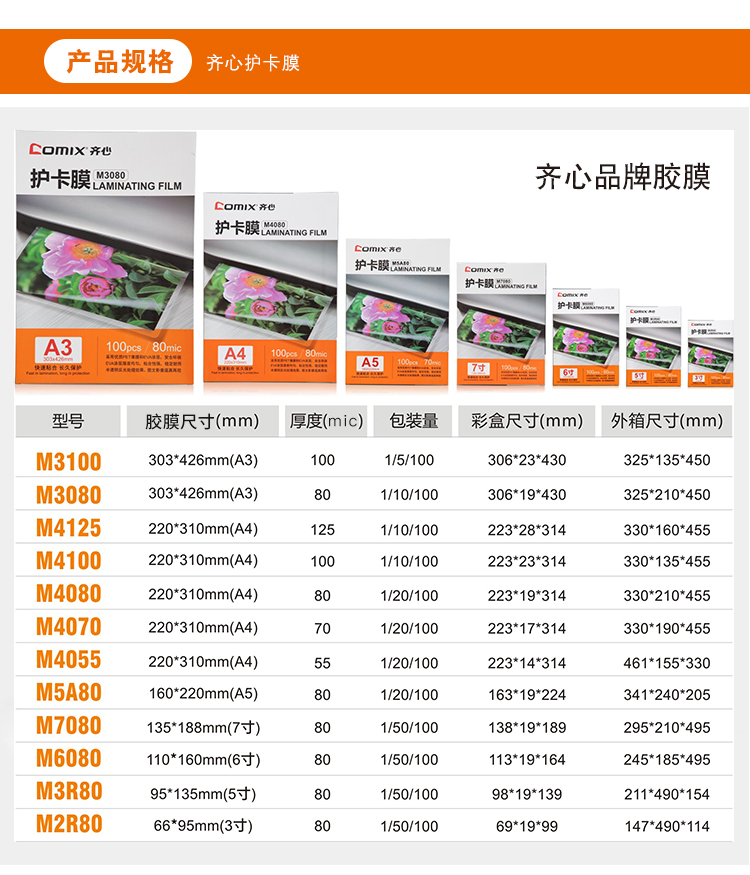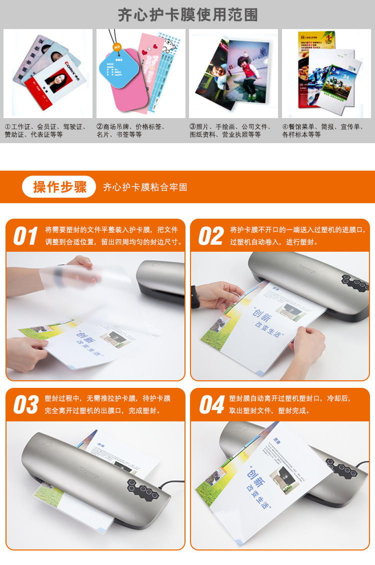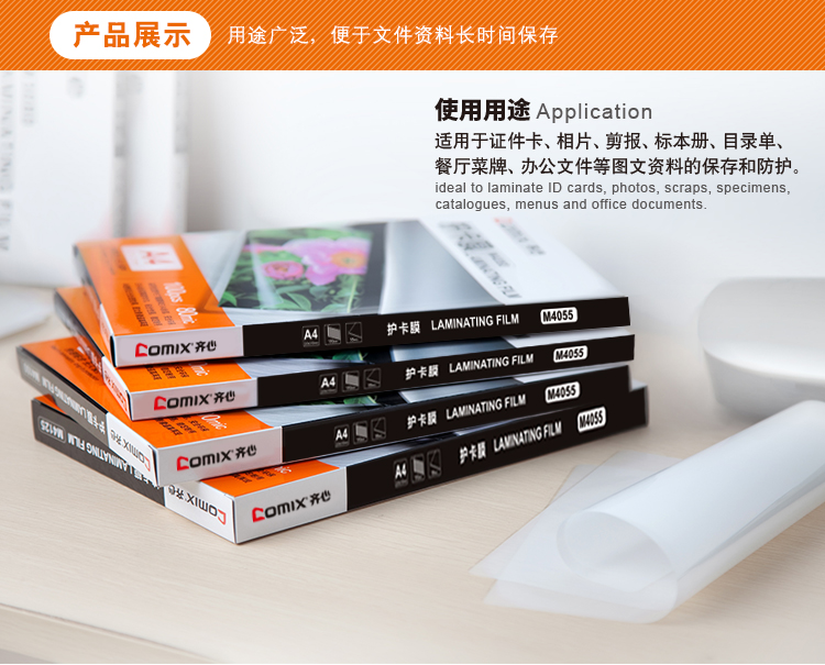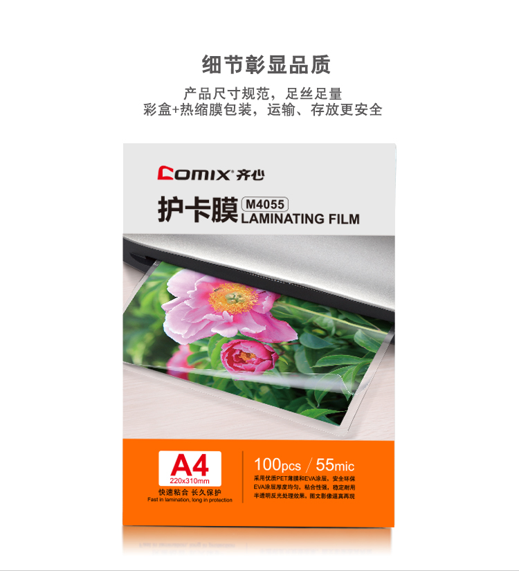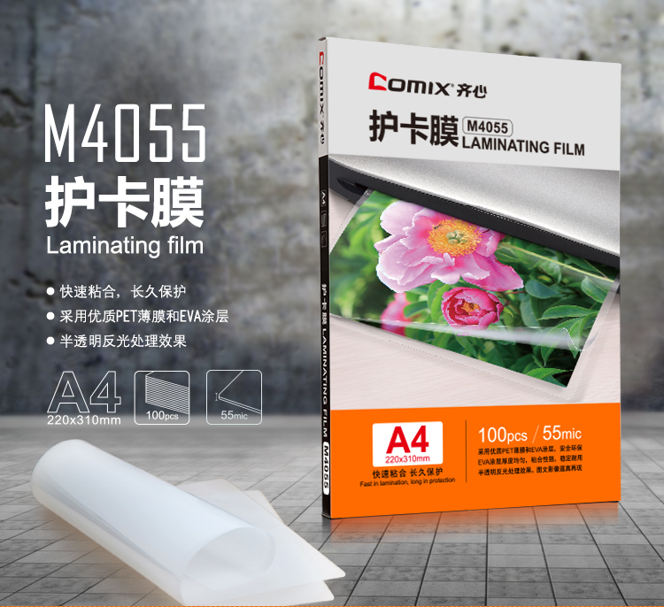 商品名称:齐心 M4055 内销透明高清护卡膜 220*310mm*55mic