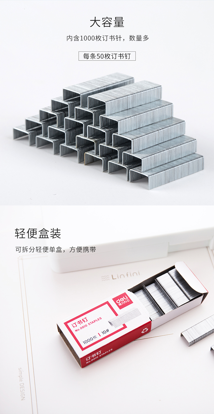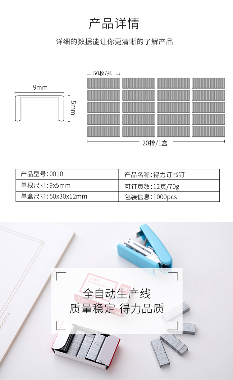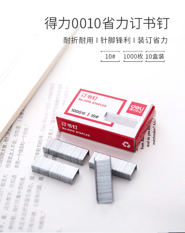 商品名称:得力0010订书钉10#(1000枚/盒)