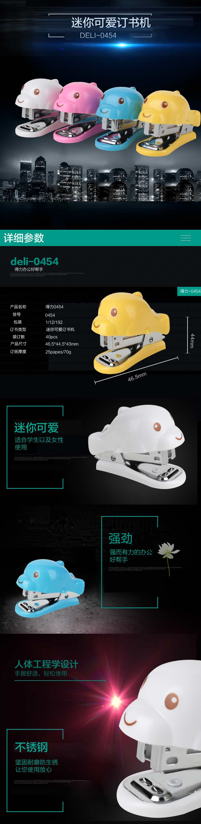 商品名称:得力0454卡通迷你订书机套装(混)(台)