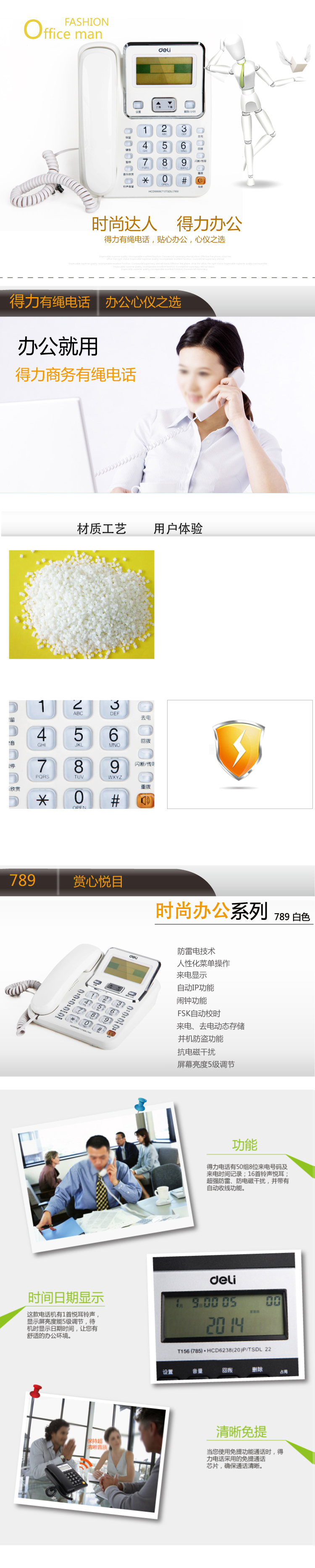 商品名称:得力789电话机(白)(台)